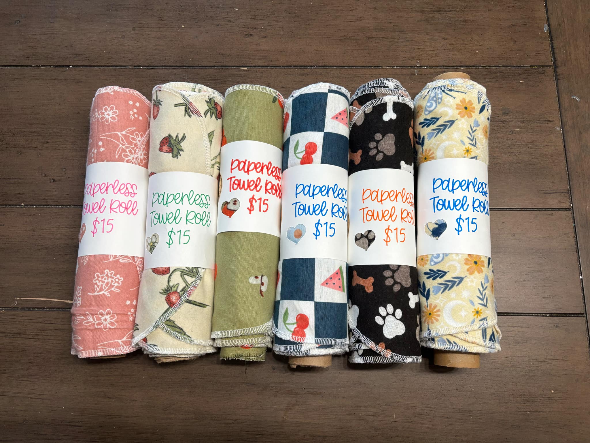 Thin, rollable, reusable cloths! Can replace paper towels anywhere in your home.